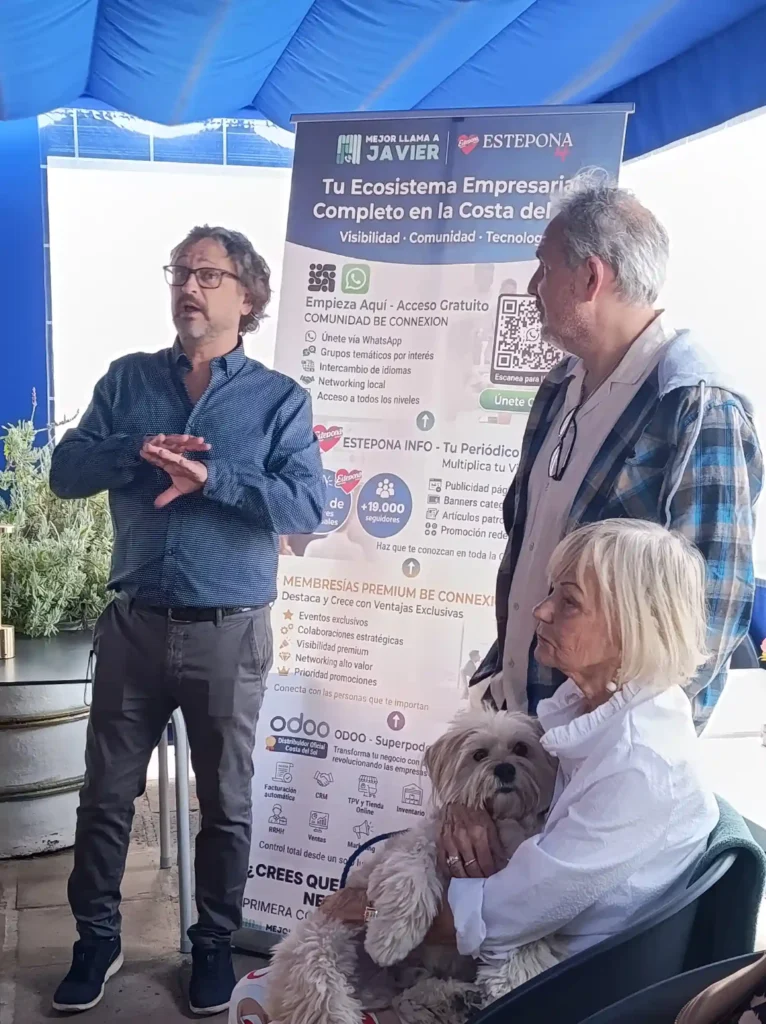 Tras el acto solidario, Javier, fundador de Be Connexion, tomó la palabra para agradecer la hospitalidad de Veronique y al equipo del Greek del Puerto por hacer posible este primer encuentro. Javier presentó en detalle la Comunidad Be Connexion y los cinco grupos activos que la conforman: el Club de Vinos, el Intercambio de Idiomas, el Networking Empresarial, el grupo de Mujeres Emprendedoras y el Grupo de Espiritualidad, todos ellos con próximas citas ya en preparación para los siguientes meses.