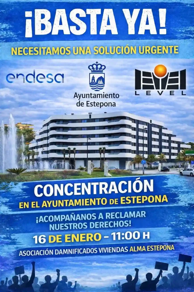 La Asociación ha convocado una manifestación para este viernes 16 de enero a las 11:00 horas frente al Ayuntamiento de Estepona. A las 14:30 horas ofrecerán una rueda de prensa para explicar su situación y las acciones legales previstas.